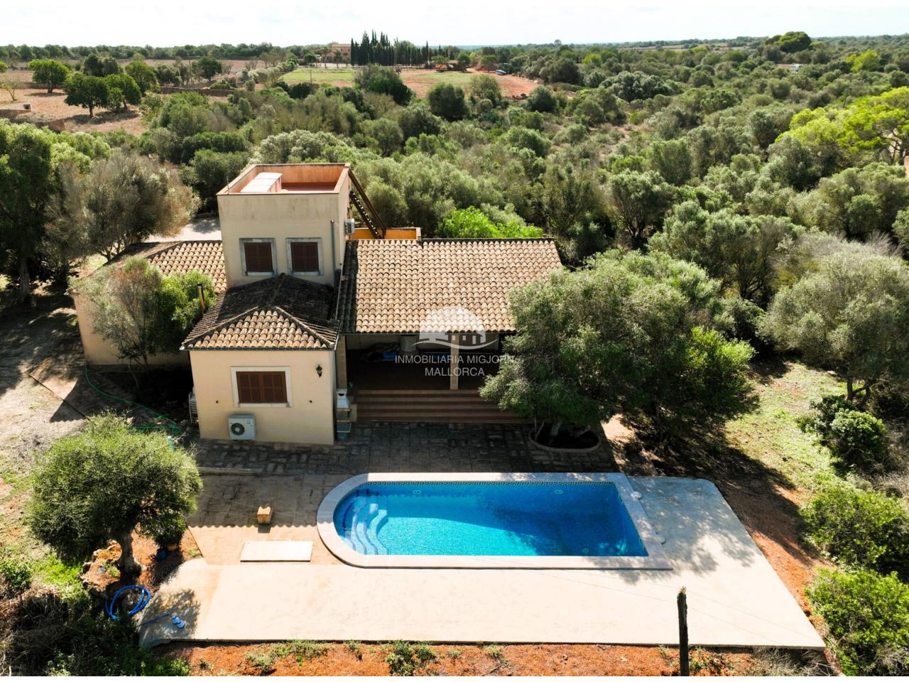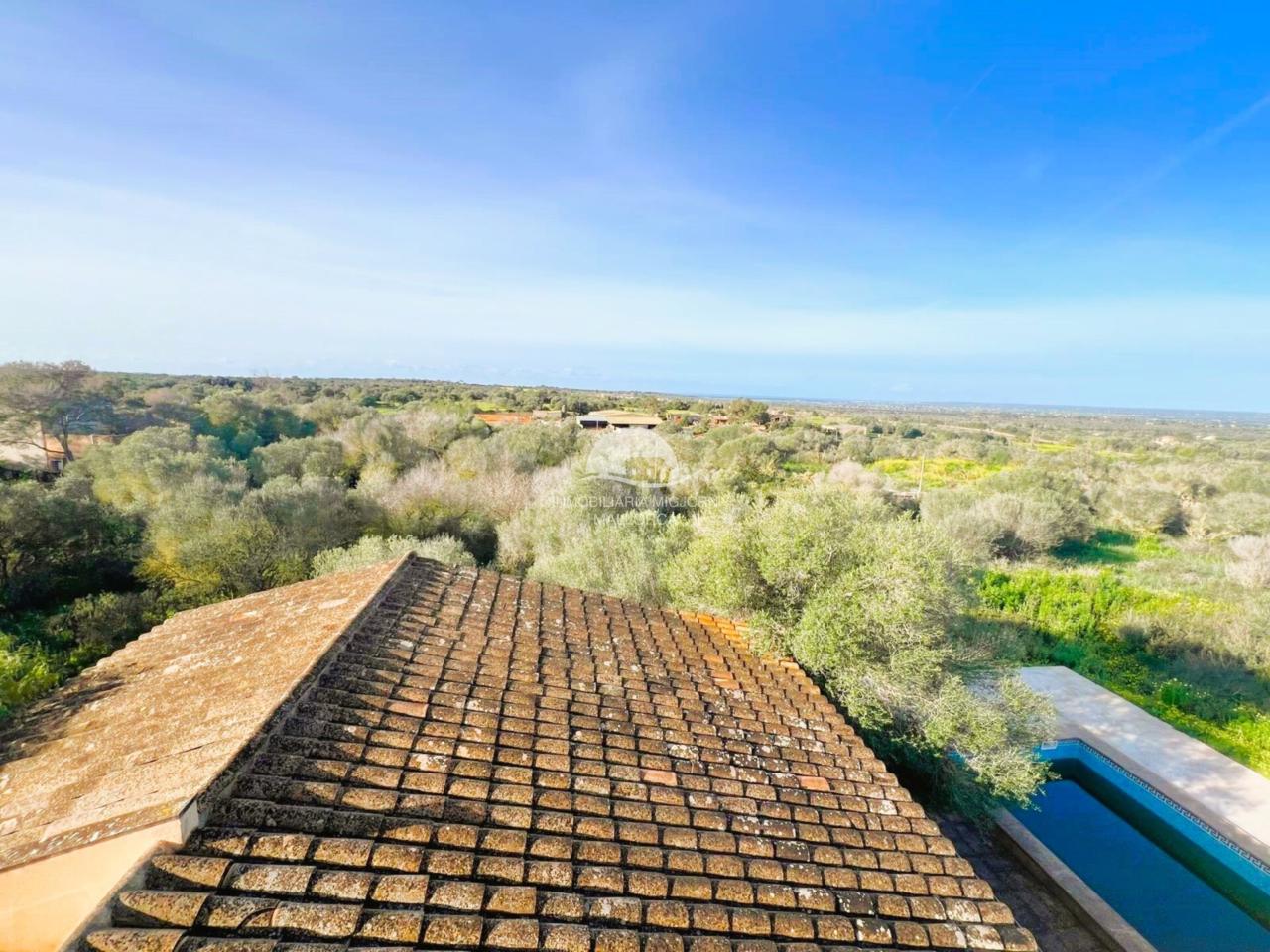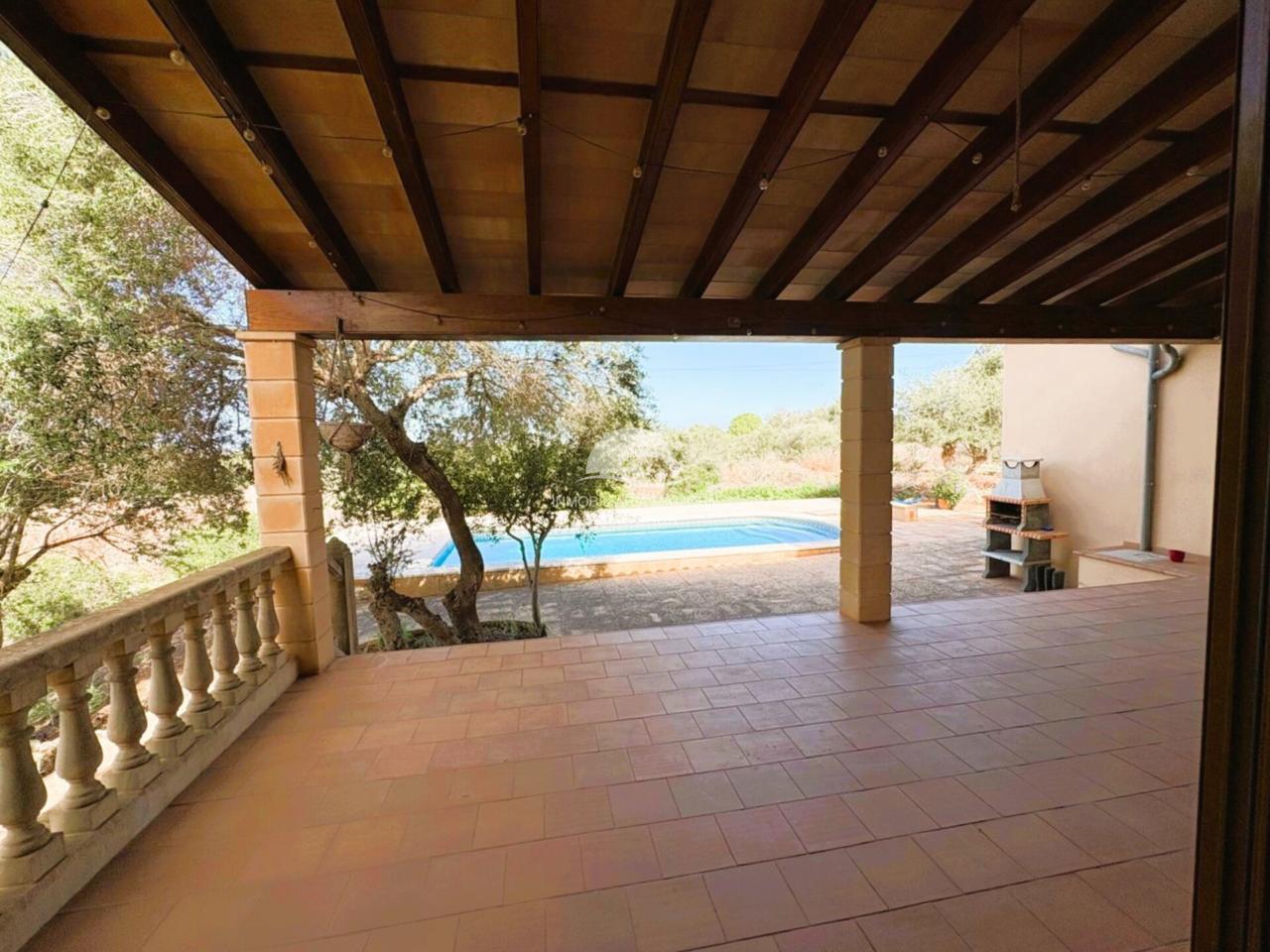 La propiedad tiene una superficie construida de 247m2 construidos sobre una parcela de 14.000m2 que está completamente vallada y que tiene zonas con matorrales y plantación de ullastre. Hay una vivienda con dos niveles, un garaje con dos plazas adjunto y una piscina con terraza y vistas al campo y a los alrededores.