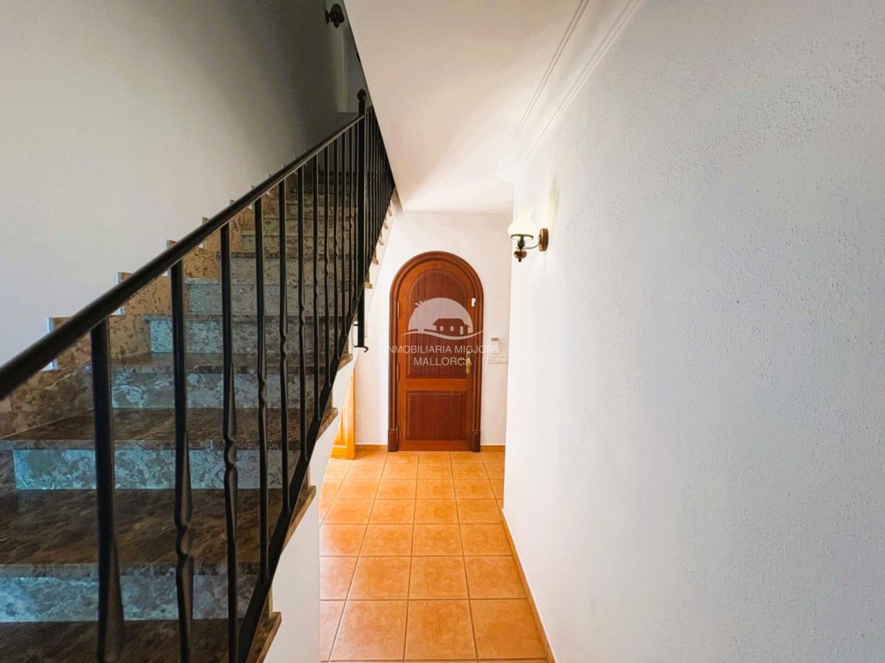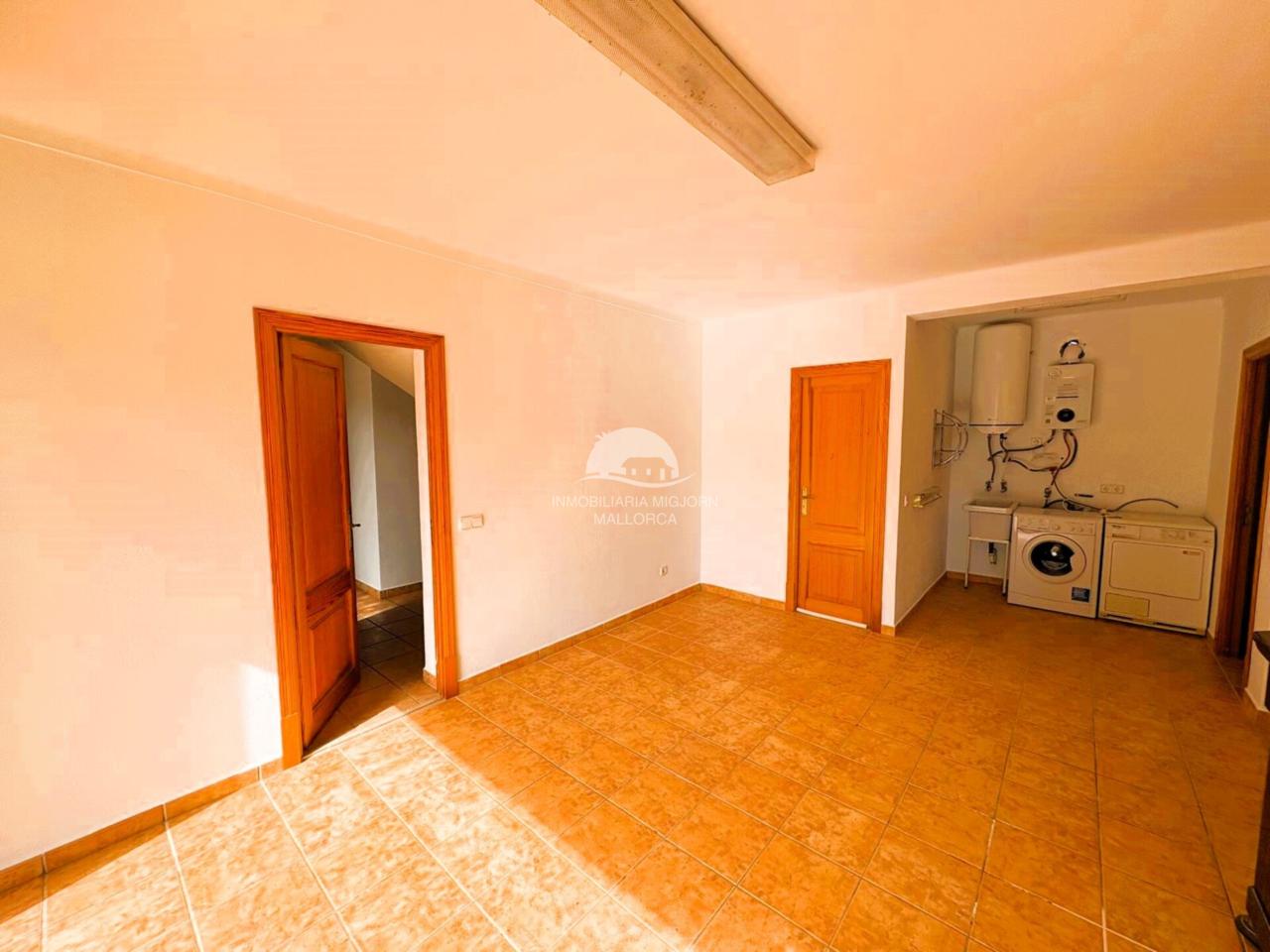 En planta baja la casa dispone de sala de estar-comedor con una cocina adjunta y acceso a un amplio porche, tres dormitorios y un baño completo y un aseo con lavadero. En la planta superior nos encontramos con una amplia habitación doble y un baño con bañera, todo ello con acceso a una terraza solárium con vistas a los alrededores.