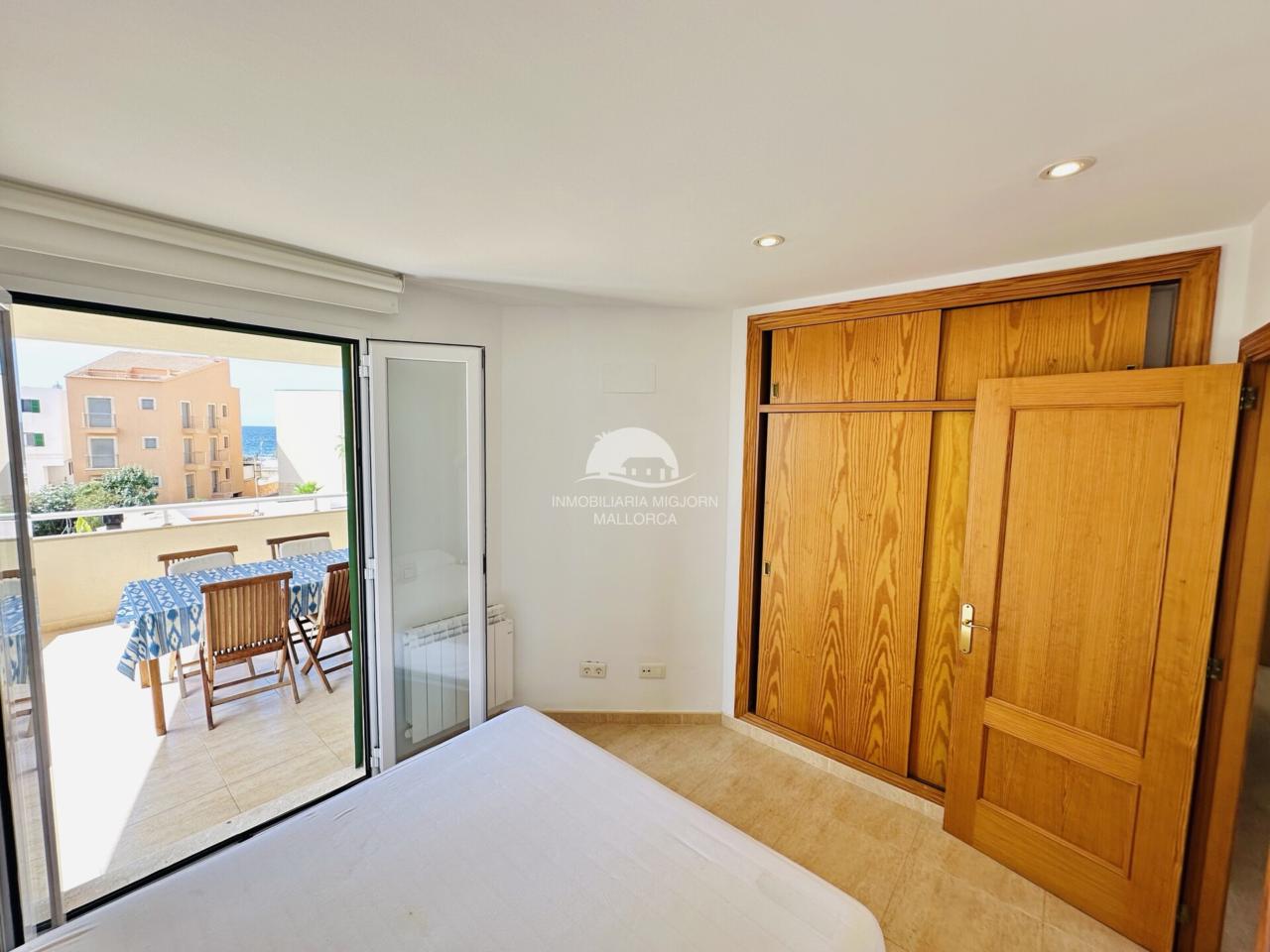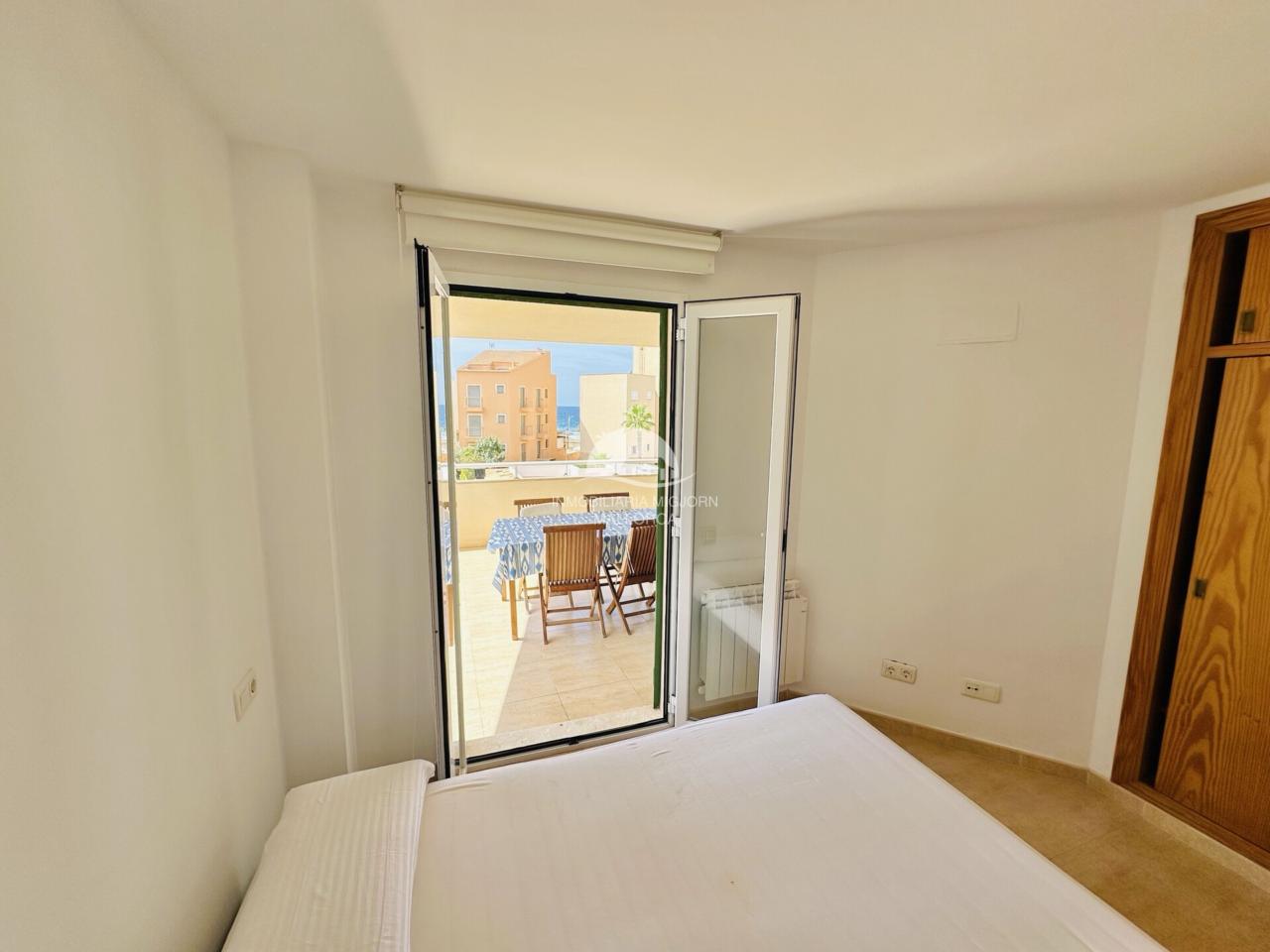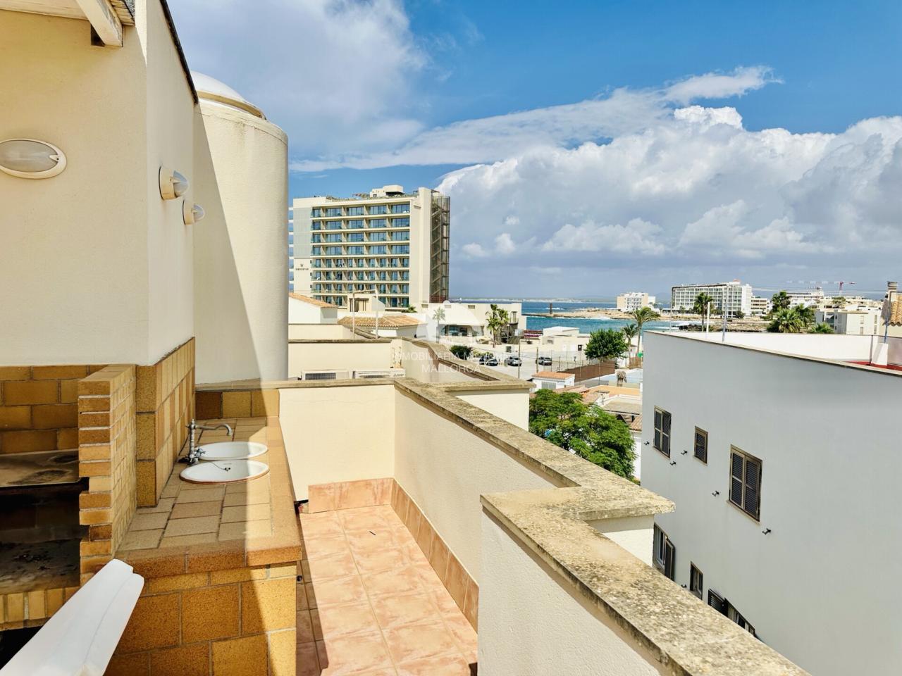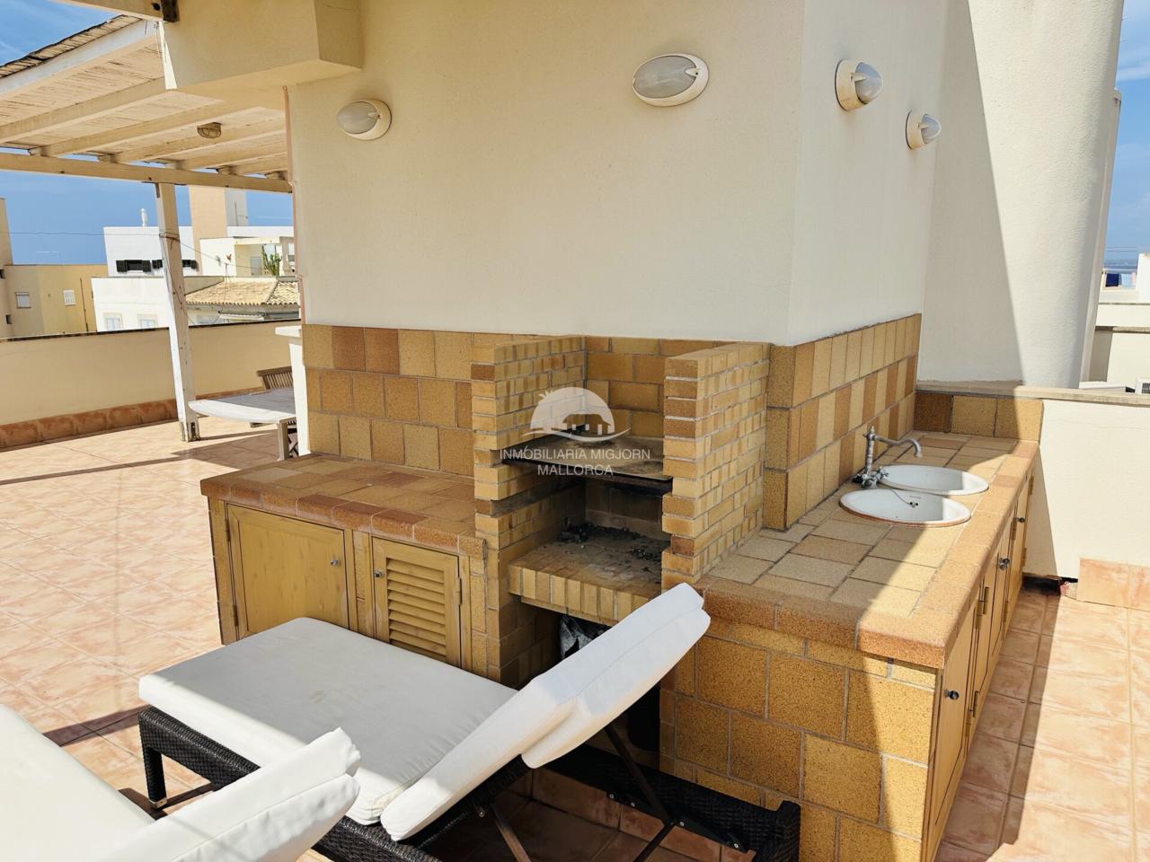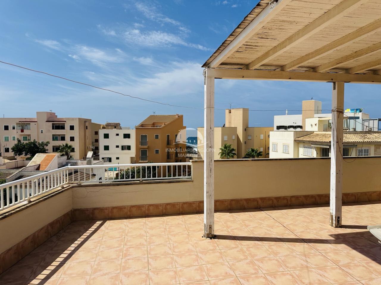 Dúplex para alquilar a largo plazo en 2ª línea en la maravillosa Colonia de Sant Jordi. Se trata de un apartamento con vistas al mar. El apartamento está en buen estado, amueblado y totalmente equipado. En la planta inferior se encuentra el área de estar y comedor con acceso a la terraza exterior con vista al mar, la cocina, dos baños, dos dormitorios dobles y uno individual. En la planta superior con azotea el apartamento tiene una gran terraza parcialmente cubierta con zona chill out y solarium. También hay un área de barbacoa y cocina exterior.