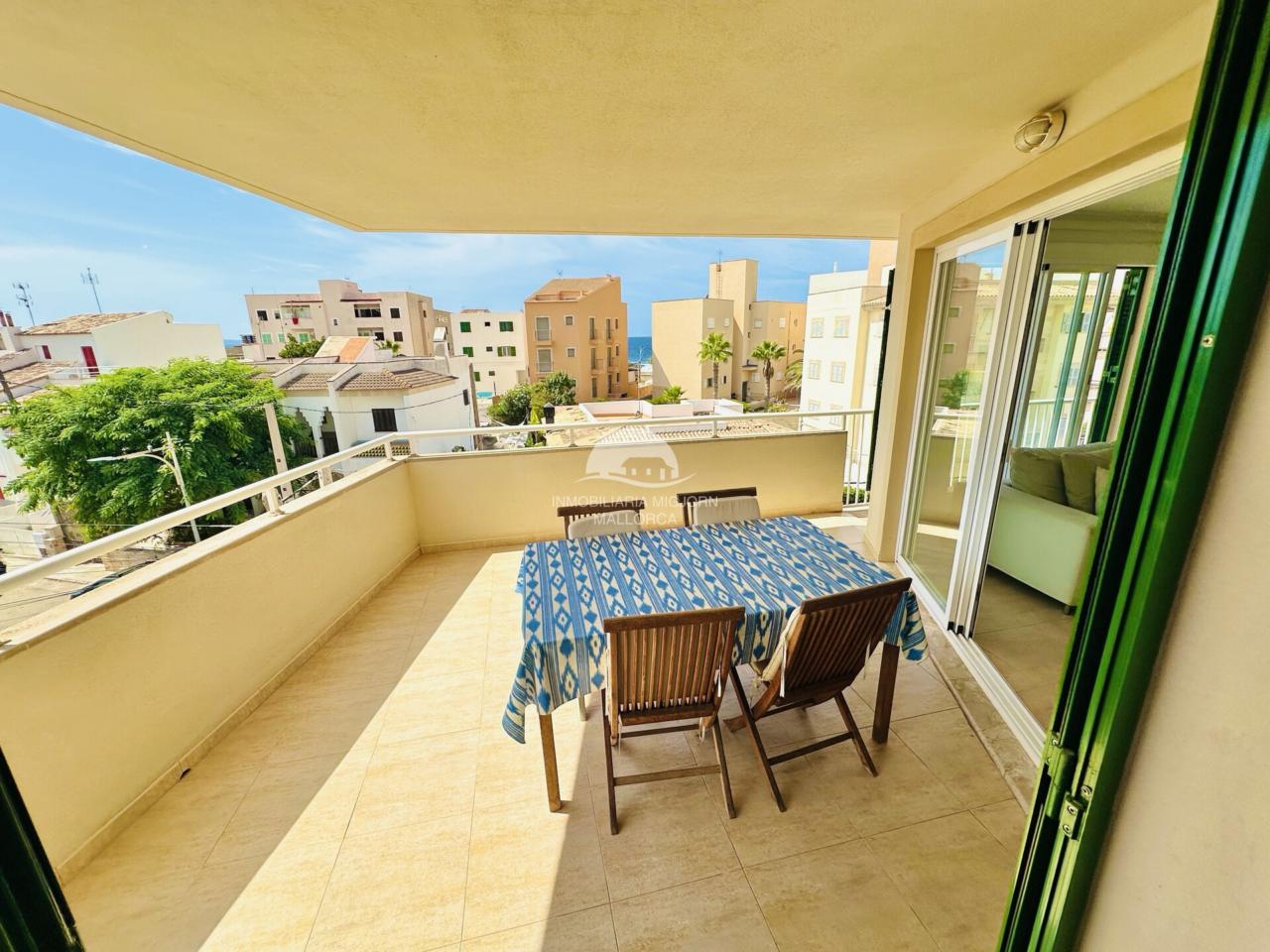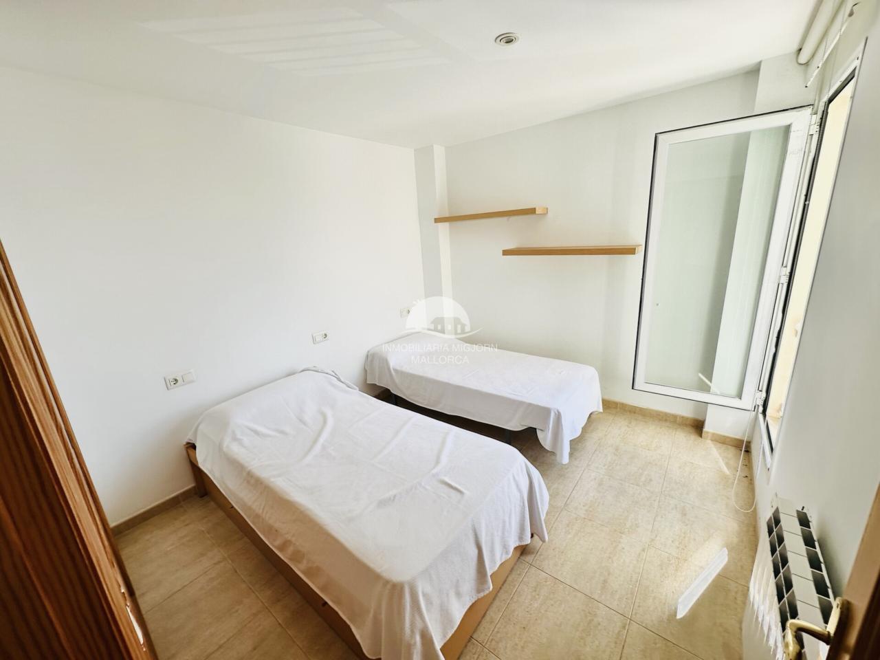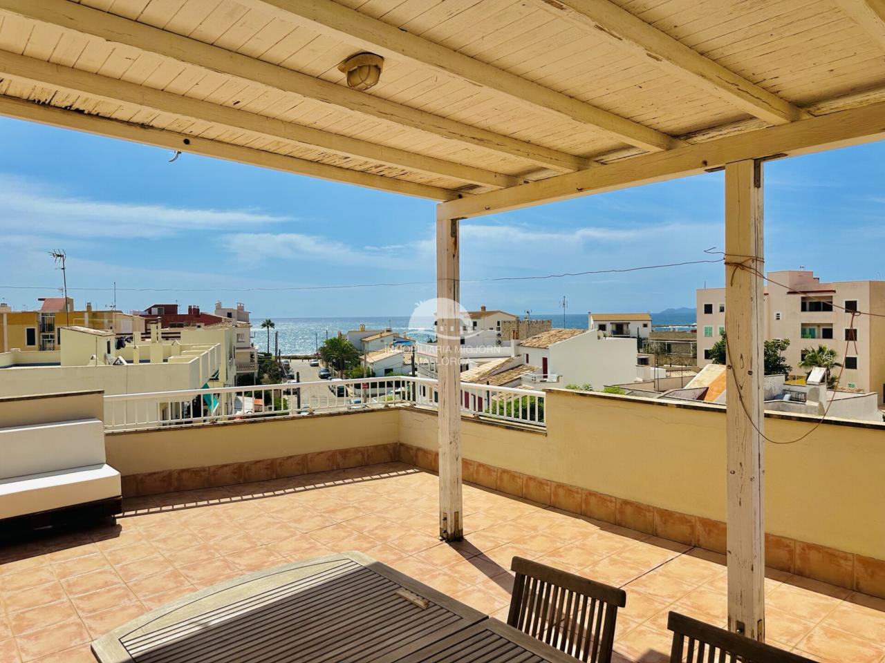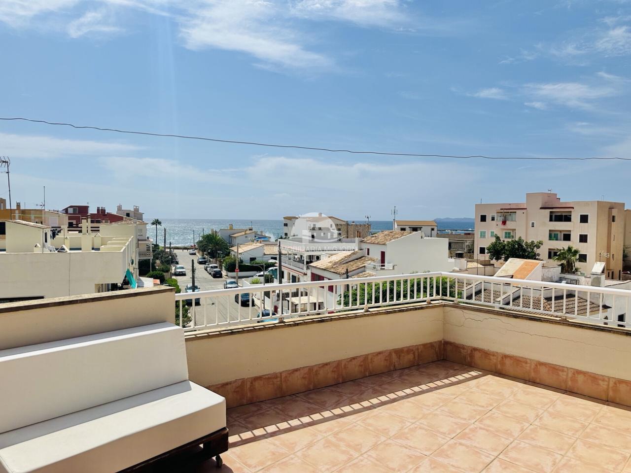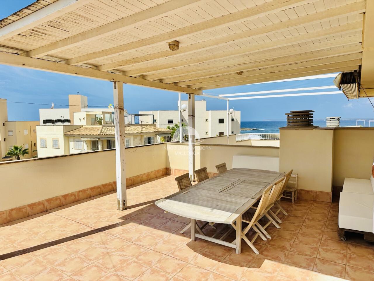 Dúplex para alquilar a largo plazo en 2ª línea en la maravillosa Colonia de Sant Jordi. Se trata de un apartamento con vistas al mar. El apartamento está en buen estado, amueblado y totalmente equipado. En la planta inferior se encuentra el área de estar y comedor con acceso a la terraza exterior con vista al mar, la cocina, dos baños, dos dormitorios dobles y uno individual. En la planta superior con azotea el apartamento tiene una gran terraza parcialmente cubierta con zona chill out y solarium. También hay un área de barbacoa y cocina exterior.